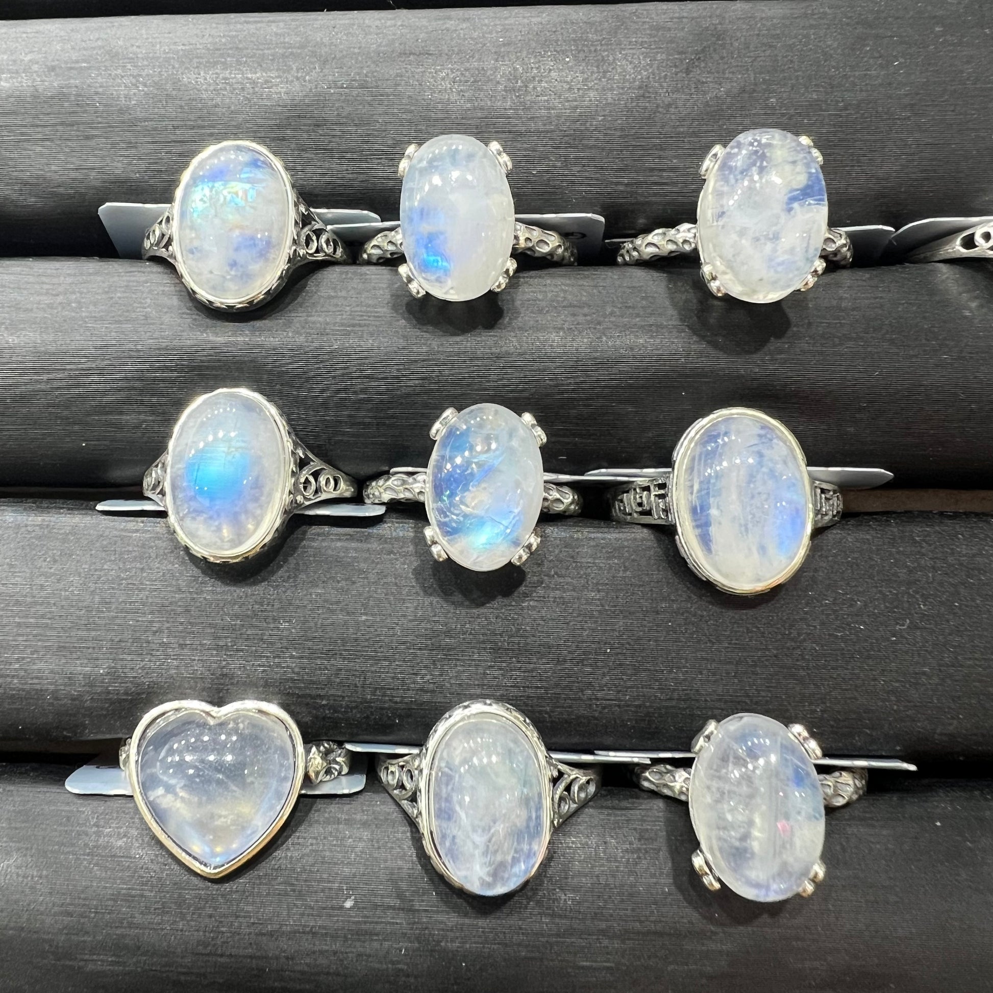 Rainbow moon stone ring silver